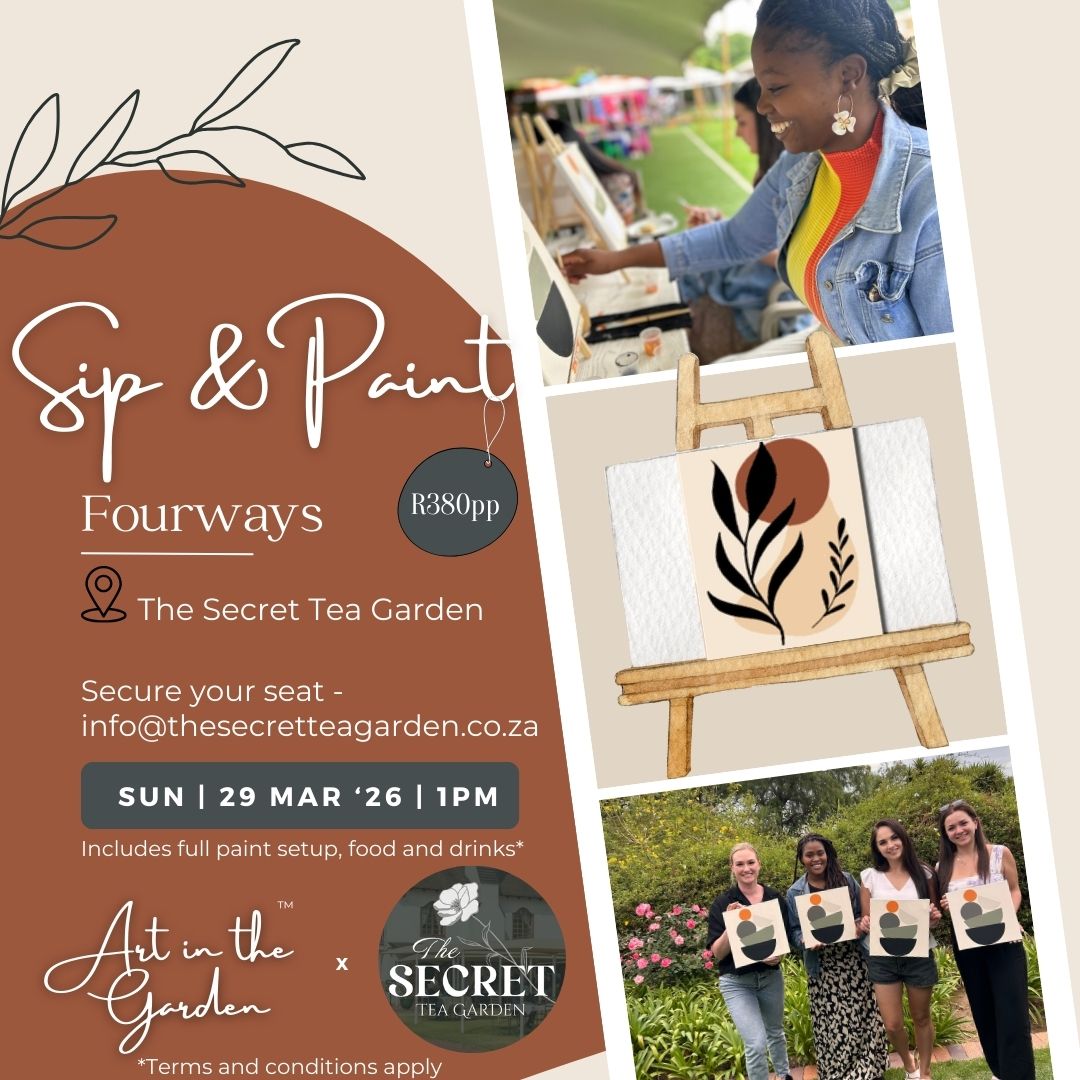 Sip & Paint (Sunday) 29 March '26 (1PM) at The Secret Tea Garden (Fourways)