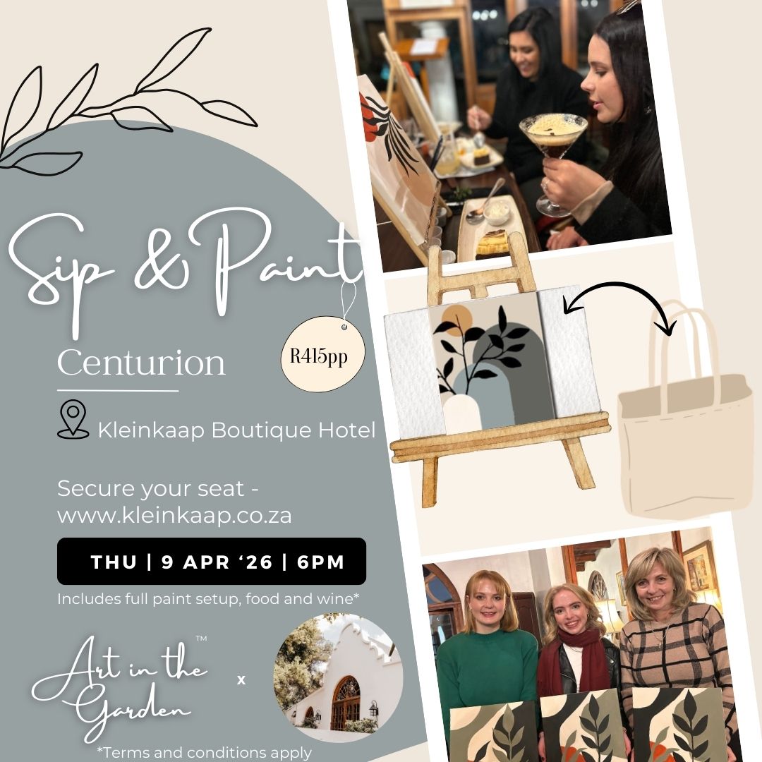 Sip & Paint (Thursday) 9 April '26 (6PM) at Kleinkaap Boutique Hotel in Centurion