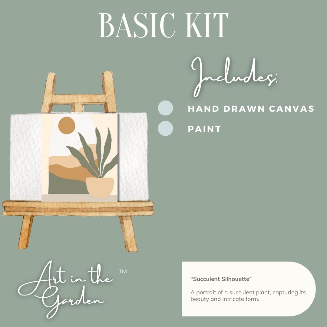 A portrait of a succulent plant, capturing its beauty and intricate form, our "Succulent Silhouette" Sip & Paint Kit brings the Art in the Garden experience straight to your home. Whether you're enjoying a solo creative escape, hosting a fun get-together with friends, or celebrating a special occasion, this kit empowers you to create a stunning, ready-to-hang masterpiece anytime, anywhere.